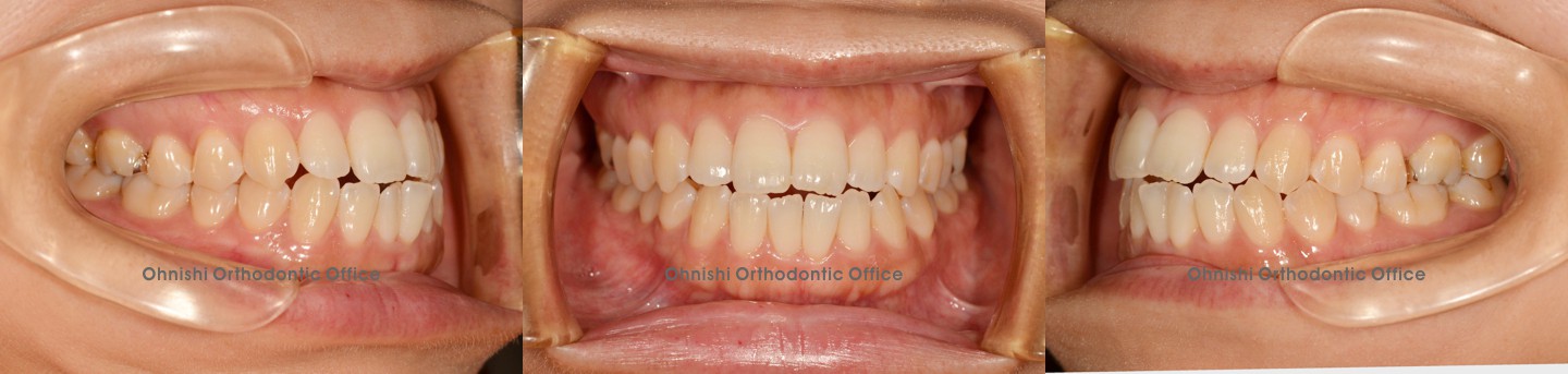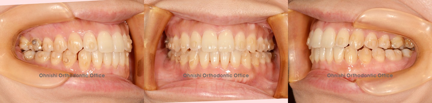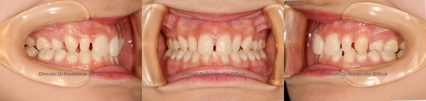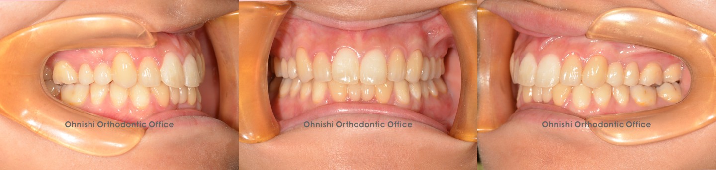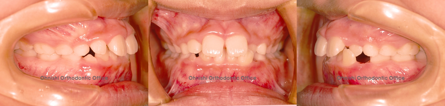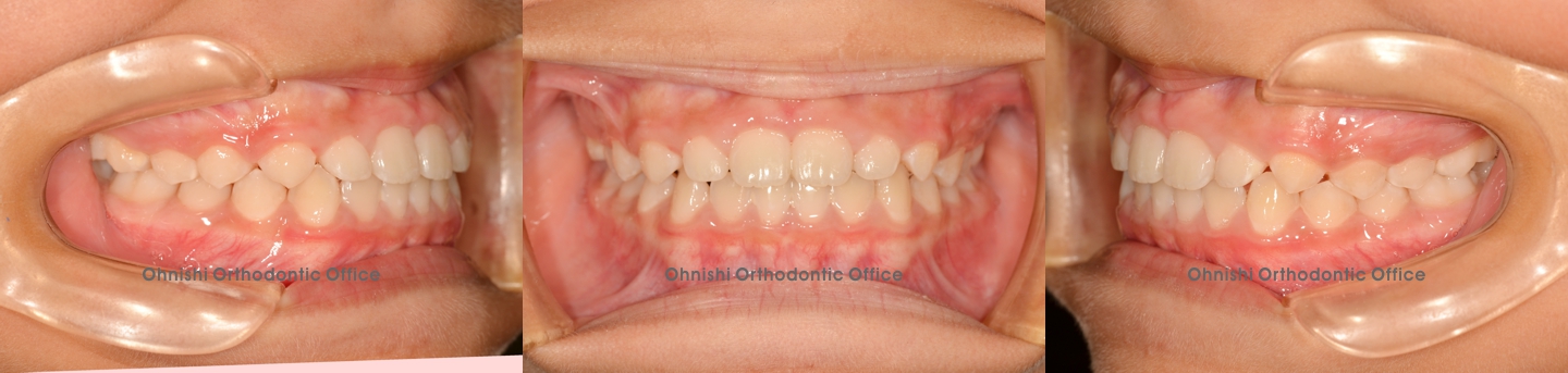 歯がデコボコに重なって萌えている状態です。以前は犬歯(糸切り歯)が外に飛び出している(八重歯)のが可愛い、チャームポイントと言われていた時代がありましたが、最近ではあまり好まれなくなってきています。欧米では”vampire tooth”(吸血鬼の歯)と呼ばれ、嫌がられる傾向があります。